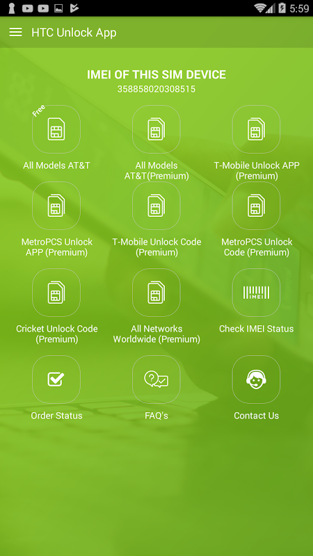 unlocking for all HTC models on AT&T network. Unlocks all models, even the latest ones if SIM is listed as clean. For other networks, the HTC service will unlock your mobile device at very low price. Receive code via in-app notification. You will get notified in your app as soon as you code is available. Easy to use and very functional app and use.
