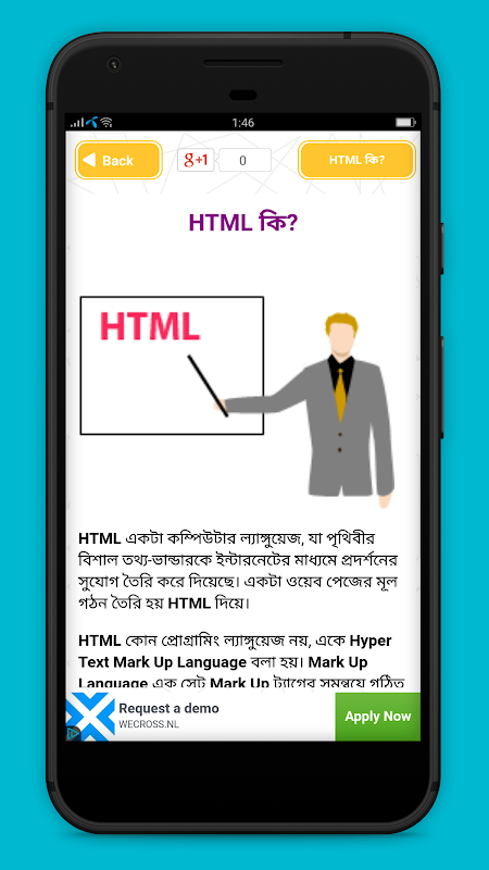 শিখে প্রোগ্রামিং শুরু করে চান তারা অনায়াসে এই অ্যাপ থেকে এই ল্যাঙগুয়েজ শিখতে পারবেন । এইচটিএমএল শিখতে দরকার হবে না কোন প্রোগ্রামিং বই ।