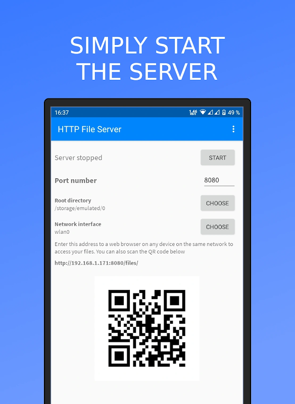 Warnung: Verwenden Sie diesen Server nicht in offenen Netzwerken oder Netzwerken, bei denen Sie nicht wissen, wer möglicherweise verbunden ist. Am sichersten ist es, den Hotspot Ihres Telefons zu verwenden, der mindestens mit WPA2 geschützt ist. Erwägen Sie auch, einige Sicherheitsmaßnahmen in den Einstellungen zu aktivieren.