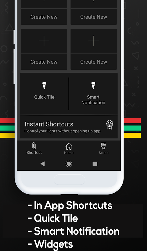 Schnelle Zusammenfassung der Features: Einfache Bedienung, Widgets, Quick Tiles, App shortcuts, Music sync, Animated scenes, benutzerdefinierte Szenen, voreingestellte Szenen, Lichtalarm, Routinen und mehr