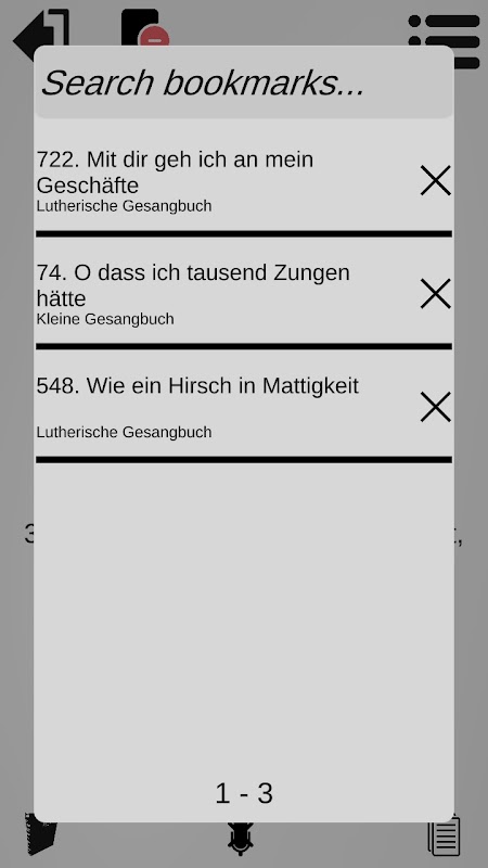 - Suchleiste, um effektiv nach dem richtigen Buch / Lied zu suchen.