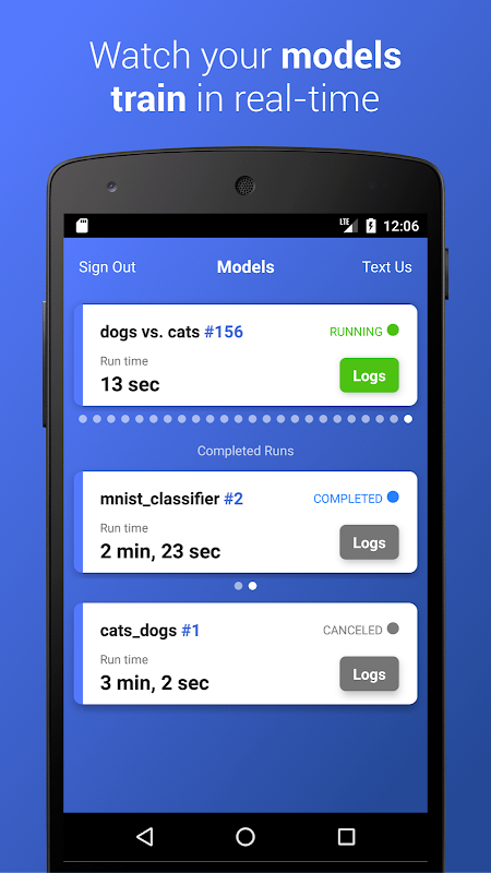 Then use the same email and password to log in to the iPhone app and view your demo run in real-time! Follow the examples and documentation on our website and GitHub page to add Hyperdash to your machine learning project.