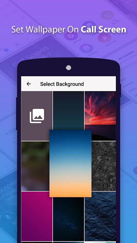 You can customize call screen background with elegant selected backgrounds or from gallery too.
