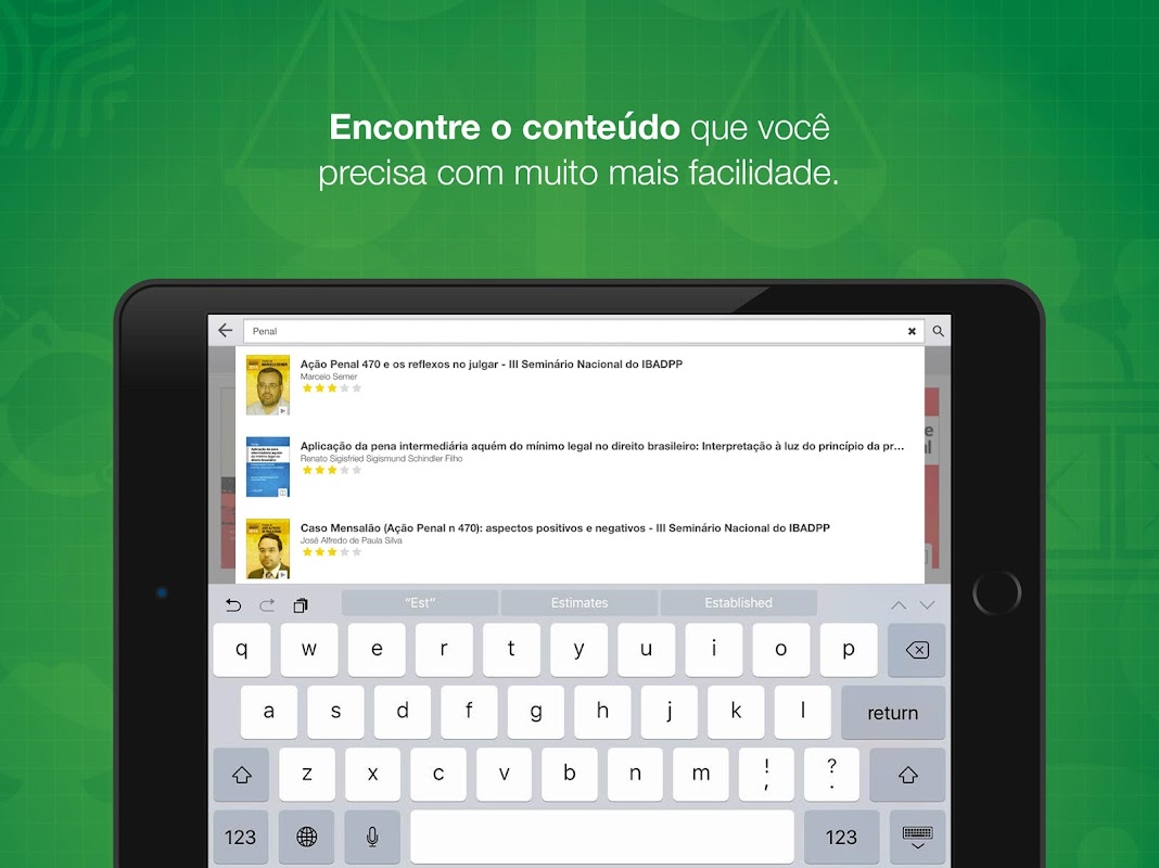 Além de comportar eBooks em formato ePub, a aplicação possui acesso a notícias, cursos e palestras online. Ao assinar a APP IBADPP em seu device você ganha o acesso a diversos conteúdos. Todas as ‘interferências’ feitas nos conteúdos disponibilizados em nossa plataforma podem ser sincronizados em qualquer outro dispositivo; tablet ou smartphone. Nosso objetivo é facilitar o conhecimento e o acesso a informações relevantes no âmbito do Processo Penal.