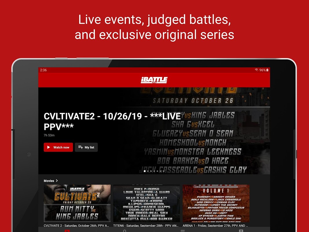 Holen Sie sich iBattleTV für alles, was mit Battle Rap zu tun hat! Schalten Sie von überall auf der Welt ein und erleben Sie Live-Events, beurteilte Schlachten und exklusive Originalserien, die zum ersten Mal an einem Ort erhältlich sind!