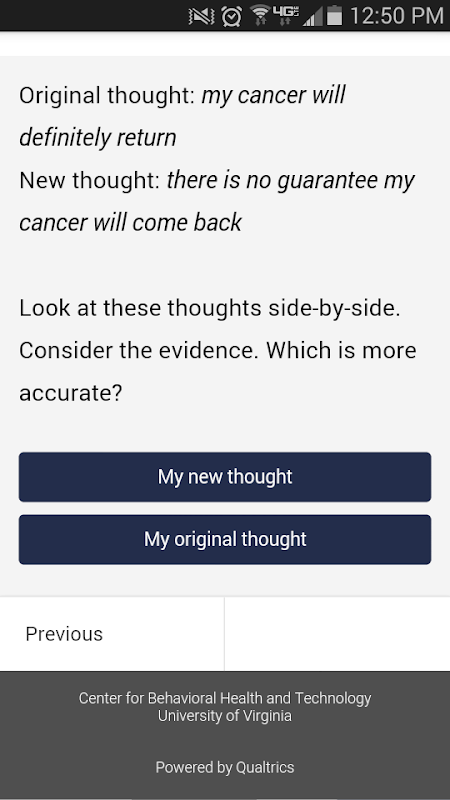 The iCanThrive app was created for a University of Virginia research study examining the impact of a mobile intervention for managing mood in cancer survivors. This study was approved by the University of Virginia Institutional Review Board for Health Sciences Research (#20648).