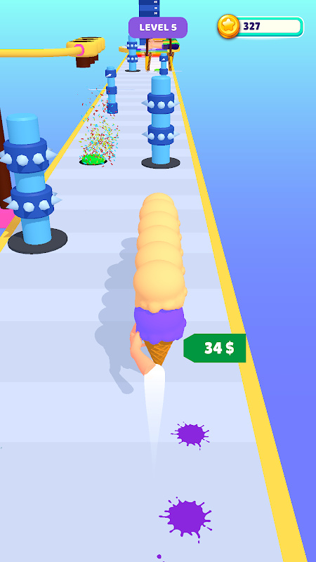 Finish the levels to unlock more cosmetics for your ice cream and your hand.