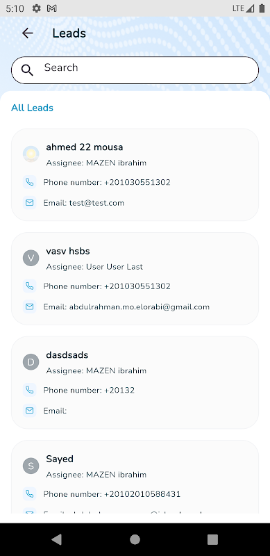- Users can show leads and contacts