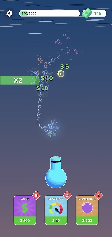 Klicken oder ziehen Sie auf die Blase, um sie zum Platzen zu bringen und mehr Geld für die Verbesserung Ihrer Ausrüstung zu erhalten.