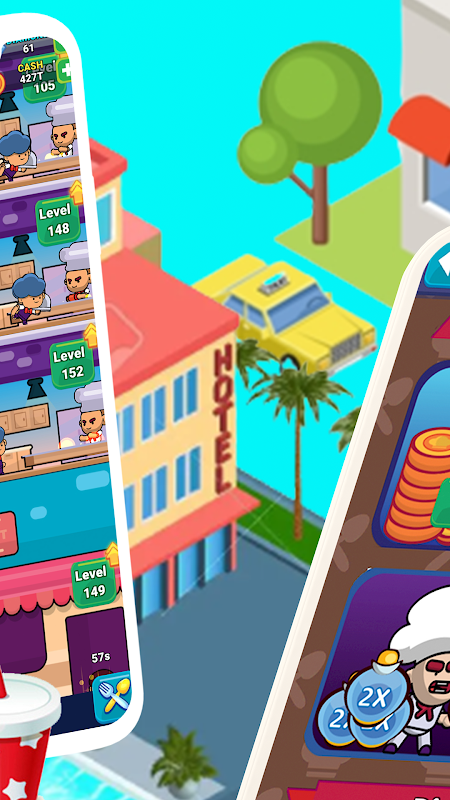 With Idle Hotel Business Tycoon is the best simulation game, you can become a Restaurant Tycoon, Factory Tycoon and a Cooking Restaurant. The game helps you manage your investment and save cash in a simple and interesting way. The special point of the game is to strategically build and optimize the factory and restaurant in order to make as little profit as possible