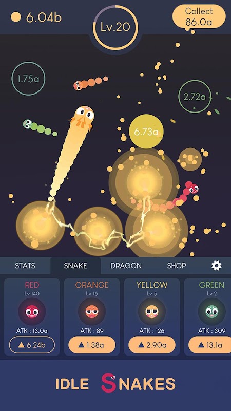 Just click and release the snake, collect energy, train the snakes to grow up, continue to devour the ball, and grow to a higher level!