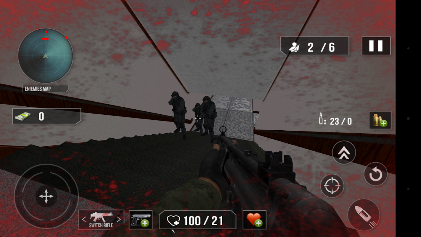 - Umschalten zwischen mehreren Waffen wie - Gewehr, Schrotflinte, Scharfschütze, Pistole, etc.
