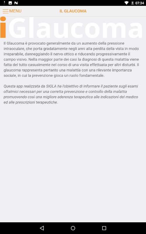 La App iGLAUCOMA, disponibile per tutti i mobile device, e dedicata al monitoraggio ed al controllo dei sintomi legati al Glaucoma.