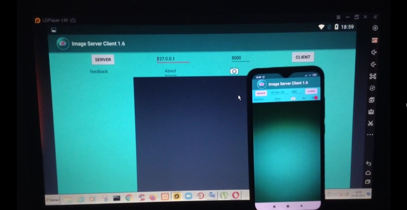 Share and receive live image from camera in the local network. No internet, only from local device to local device.