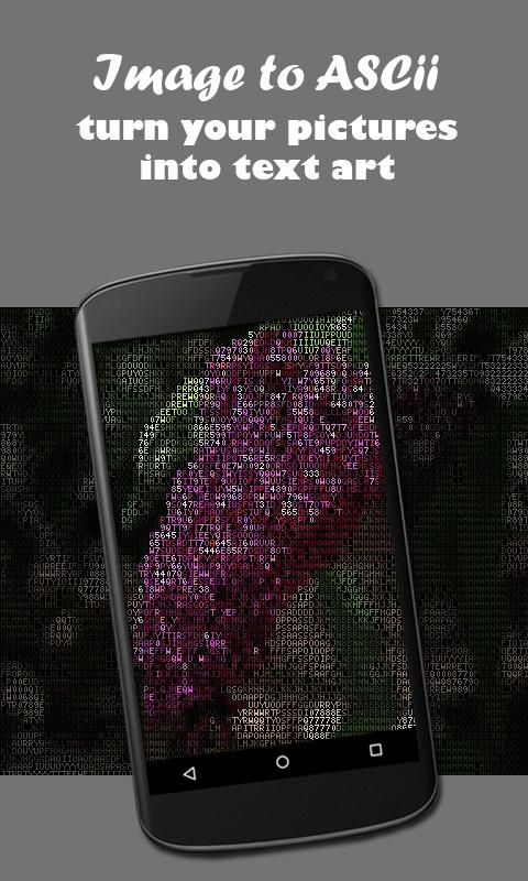 Bild in ASCII ist eine mobile / Tablet-Version Konverter, wo Sie brauchen, um zu HTML oder TXT nicht Ihre Bilder Erweiterung ändern, wird diese App machen es für Sie sofort.