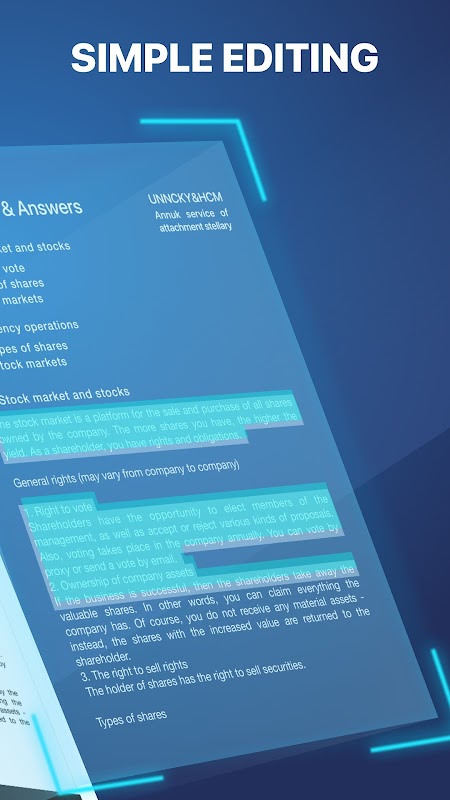 Bild zu Text: OCR-Scanner-App ist Ihr mobiler Dokumenten-Scanner und Texteditor. Scannen Sie jedes Dokument, konvertieren Sie einfach jedes Bild zu Text und teilen Sie es über soziale Netzwerke.