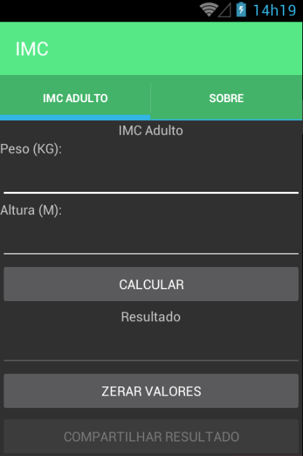 Cálculo simples de IMC (Índice de Massa Corporal).