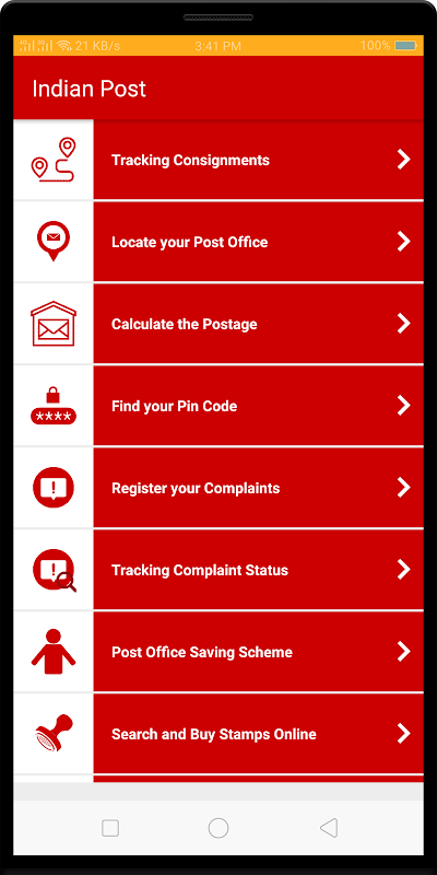 Indian Post is a citizen mobile app which provides Speed Post Status, Tracking Consignments, Post Office Search, Speed Post Calculator, Saving Schemes, Recruitment, Agents Login, Registering Complaints, Tracking Complaints, Tenders and much more.
