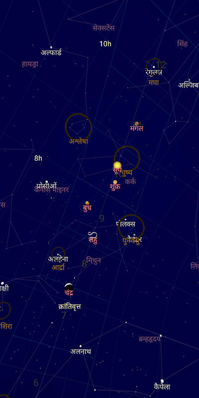 Sterne, Planeten und Konstellationen Namen sind mit westlichen Namen, wo indischen Namen gibt es nicht ergänzt. z.B., Neptun.