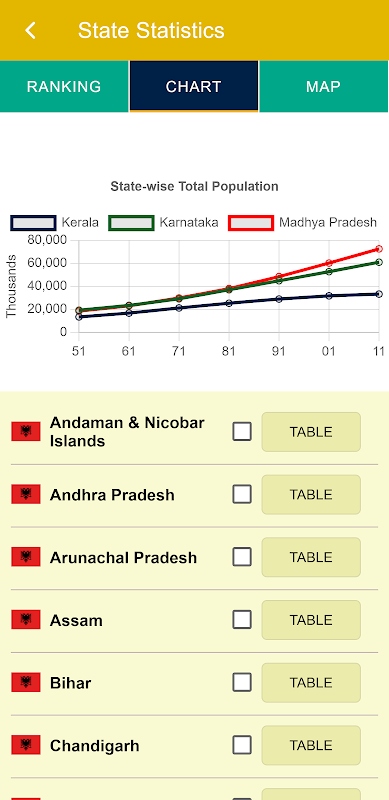 Ranking-System: Staaten werden in einer Rangfolge basierend auf ausgewählten Indikatoren aufgelistet, und Benutzer können das Jahr ändern, um Rankings für bestimmte Zeiträume anzuzeigen.