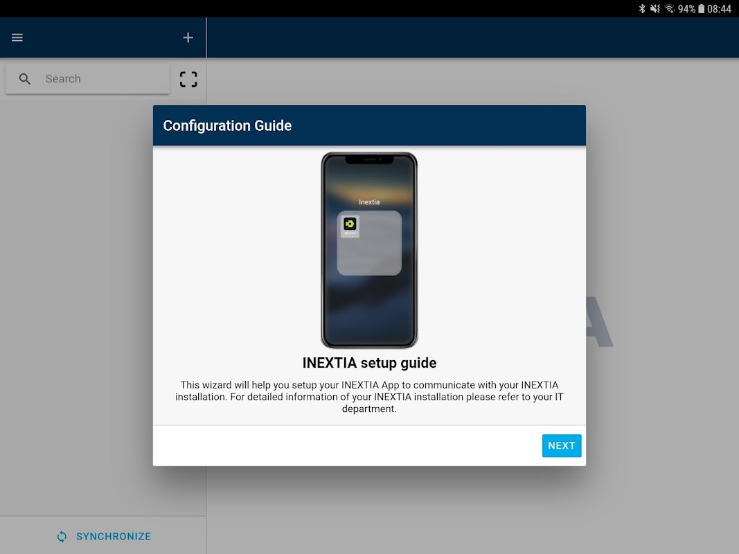 Das Internet ist nur für die Synchronisierung mit INEXTIA erforderlich, sodass Sie offline in der App arbeiten können.