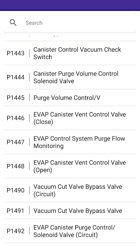 Extrem benutzerfreundlich! Sie müssen sich nicht einmal für ein Fahrzeugmodell entscheiden. Wenn Sie einfach Ihren Fehlercode eingeben, zeigt die App alle unterstützten Erklärungen an. Es ist keine Internetverbindung erforderlich, und Sie müssen nicht mehr stundenlang auf die Motorkontrollleuchte schauen, um die Beschreibung eines einzelnen Codes zu finden. Der Suchprozess für Infiniti Diagnostic Trouble Code (DTC) Fehlercodes war noch nie so einfach.