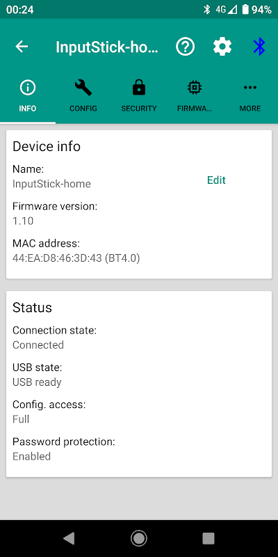 InputStickUtility bietet einen Hintergrunddienst, mit dem andere Apps eine Verbindung zu InputStick-Geräten herstellen können.