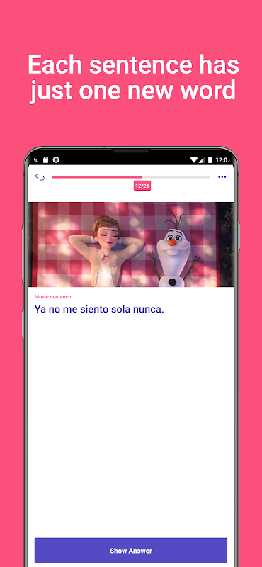 Wir haben auch eine coole KI, die dir ständig den nächstbesten Satz zum Lernen empfiehlt. Was ist der nächstbeste Satz? Es hat immer nur ein neues häufig verwendetes Wort.