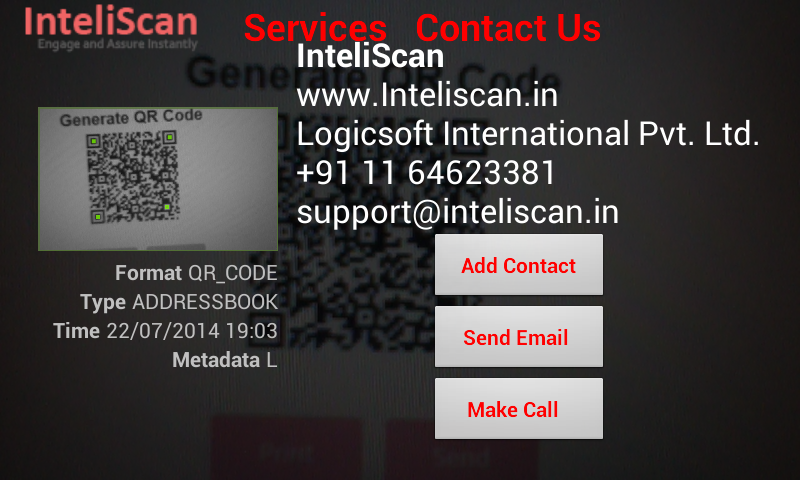InteliScan becomes more than a 'Barcode Scanner', when combined with our Online Service, InteliScan.in - Engage and Assure Instantly. Though this service, one can create intelligent QR codes that can be managed to represent different links at different times, tracked using Analytical tools, integrated with an online response form or chat and host traceability data about a document or a product.