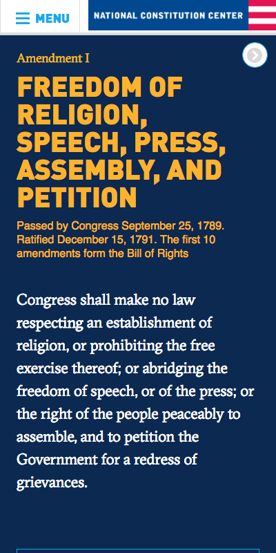 The free Interactive Constitution app presents the full text of the U.S. Constitution and features essays by leading scholars that detail areas of agreement and disagreement across a range of philosophical and legal perspectives. Created by the National Constitution Center in partnership with the American Constitution Society and the Federalist Society, this nonpartisan resource is featured by the College Board in its Advanced Placement history and government courses. The Interactive Constitution was made possible by a grant from the John Templeton Foundation.