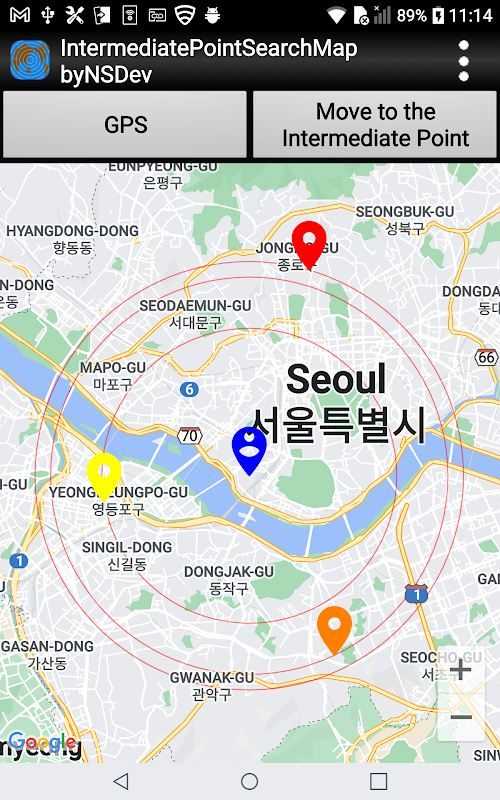 Anwendung, die die Zwischenpunkte mehrerer angegebener Punkte anzeigt.