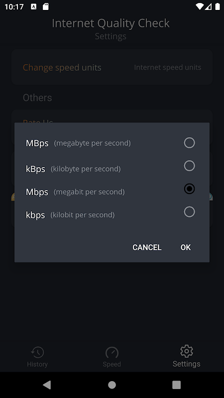 This application help you check the speed of your connection and save it automatically to compare it using history dashboard.