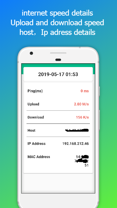 ✓ Save the historical details about your speed, including download and upload speed, ping, IP address, and Mac address.
