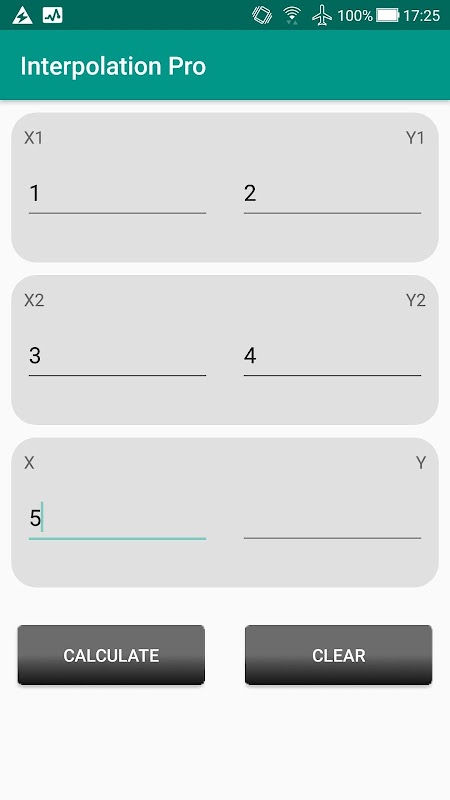 Fill in five values and leave one blank. Click the Calculate button, and the blank value will be filled in by linear interpolation.