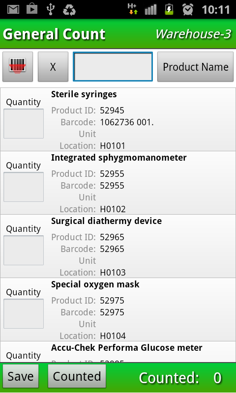 The app does not require using devices geared more for this and gives the possibility to perform inventory counts with smart phones and tablets .
