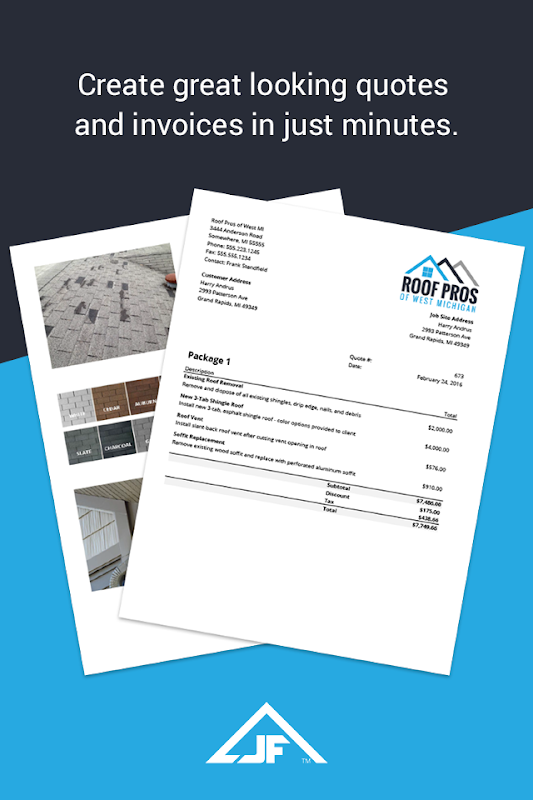 • Sehen Sie professionell aus: Bauen Sie Vertrauen bei Ihren Kunden auf und zeigen Sie ihnen, dass Sie der perfekte Auftragnehmer für ihre Projekte sind. Mit der Rechnungs- und Kostenvoranschlags-App von JobFLEX können Sie Ihr Logo in Ihrer Rechnung anpassen, Fotos zu Ihrem Kostenvoranschlag hinzufügen, Ihren Kostenvoranschlag schneller liefern und Ihrem Kunden vor Ort oder von überall aus schnell eine Rechnung zustellen.