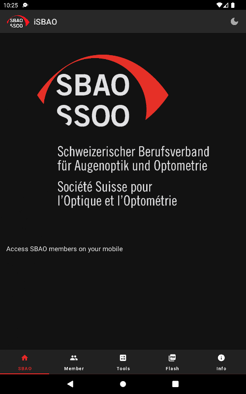 Mobile App des SBAO Schweizerischer Berufsverband für Augenoptik und Optometrie