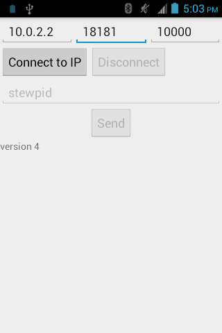 Beabsichtigte zu beheben / Test-IP-Verbindungen. Ein Benutzer läuft als Server und wartet auf eine Verbindung zu einem bestimmten Port, der anderen Benutzer läuft als Client und versucht, auf den Server IP und Port zu anschließen. Sobald eine Verbindung hergestellt ist, können Chat-Nachrichten zwischen den beiden Geräten gesendet hin und her werden.