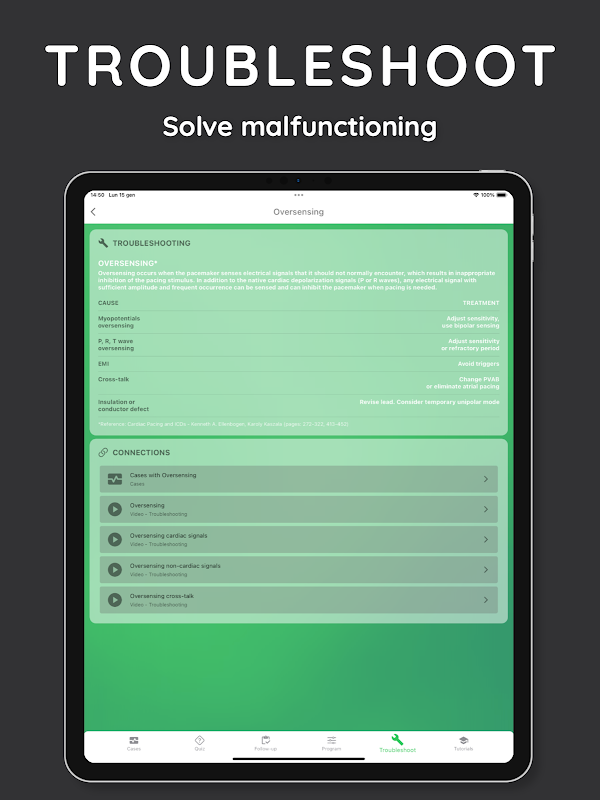 Sind Sie ein Gesundheitsfachmann, ein Mitarbeiter eines Medizintechnikunternehmens oder jemand, der sich für implantierbare Herzgeräte interessiert? Suchen Sie nicht weiter! iPacemaker Follow-up ist Ihre ultimative App, um das klinische Management von Herzschrittmachern und implantierbaren Defibrillatoren zu meistern. Angetrieben von fortschrittlicher künstlicher Intelligenz verbessert diese App Ihr Verständnis von Konzepten und Technologien in diesem Bereich. Mit über 150 echten klinischen Fällen bietet sie umfassende Unterstützung durch Tutorials, Fehlerbehebung, Programmierung und Nachsorge.