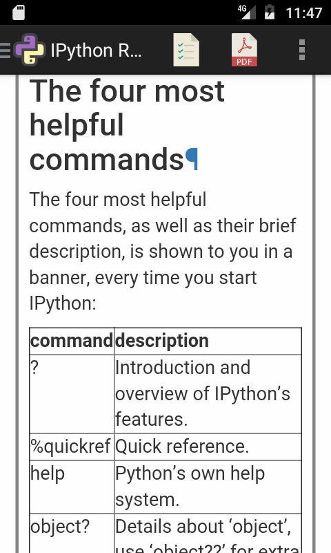 Sie werden alle diesen Abschnitt offline ohne Internetverbindung finden und IPython lernen leicht an jedem Ort und zu jeder Zeit.