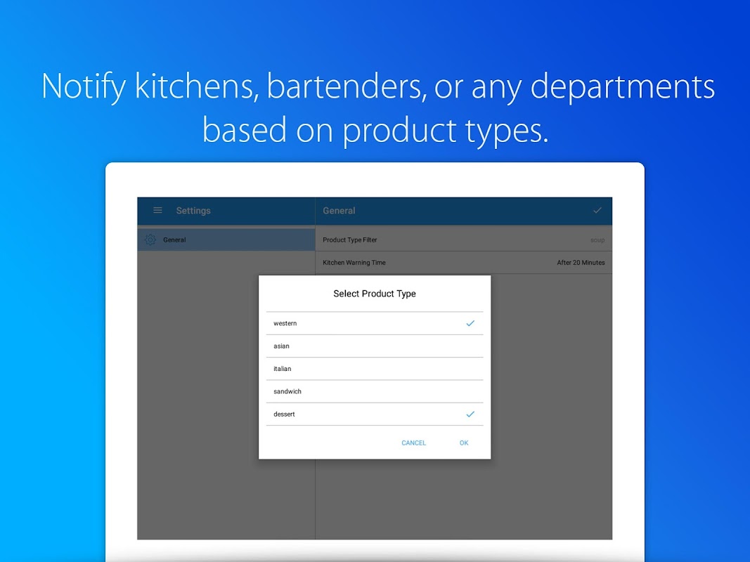 • Filter-Benachrichtigungen auf Basis von Produkttypen - nutzen Sie diese App für Köche, Barkeeper oder irgendwelche Abteilungen!