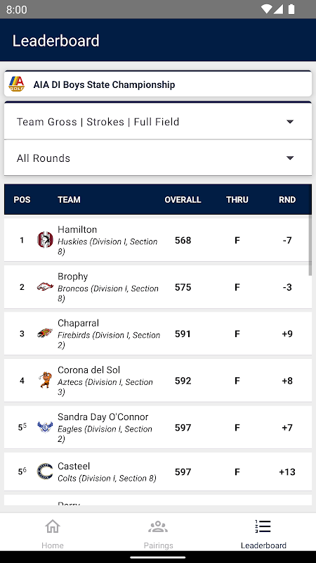 Nach Abschluss der Turniere werden staatliche, regionale und lokale Ranglisten automatisch aktualisiert, um zu zeigen, wie sich Teams und Golfer gegen ihre Konkurrenz behaupten. Statistiken werden in der mobilen App erfasst und aggregiert, sodass Trainer, Spieler und Zuschauer den Fortschritt während der gesamten Saison verfolgen können.
