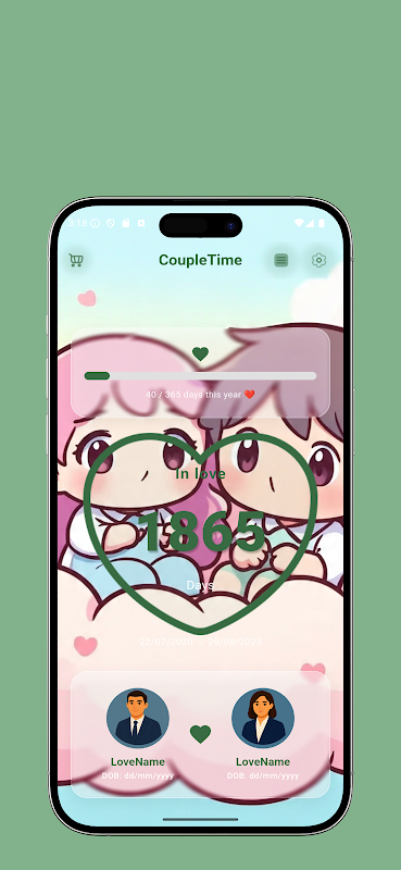 Liebe besteht aus unzähligen kleinen Momenten, jeder mit seiner eigenen Bedeutung und Schönheit. Diese App ist ein sanfter Begleiter, der Ihnen hilft, diese Momente zu schätzen und sie in Ihrem Herzen zu bewahren. Ob der Tag, an dem Ihre gemeinsame Reise begann, ein Jahrestag, der Ihnen am Herzen liegt, oder Meilensteine, die Ihre Verbundenheit symbolisieren – jedes Detail kann Teil einer unvergesslichen Geschichte werden.