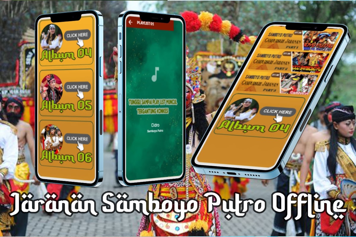 Vollständige Sammlung von Jaranan Samboyo Putro: Genießen Sie die komplette Sammlung von Jaranan Samboyo Putro-Songs in Offline-Form. Wir verstehen, dass Sie die Schönheit dieser Kultur jederzeit und überall erleben möchten, ohne eine Internetverbindung zu benötigen.