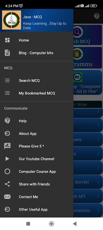 Suchen Sie nach einer umfassenden und benutzerfreundlichen App, mit der Sie die Java-Programmierung meistern können? Suchen Sie nicht weiter als „Java-Programmierung: MCQ, Java-Quiz, Java-Interview, alle Java-Programme“!