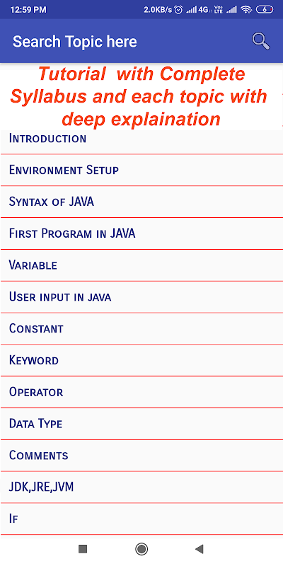 This is the only app in which you can learn the whole syllabus of Java language with Tutorials ,programs and Interview questions and answers.