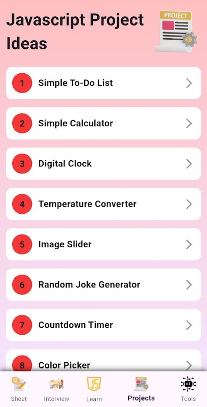 Umfassender Lernpfad: Egal, ob Sie sich auf ein Vorstellungsgespräch vorbereiten, Projekte erstellen oder einfach nur JavaScript beherrschen möchten, diese App deckt alle Aspekte der Sprache ab.