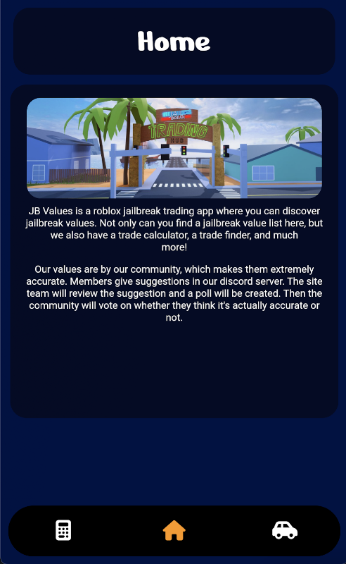 JB Values ist eine Jailbreak-Handelswebsite, auf der Sie Jailbreak-Werte entdecken können. Hier finden Sie nicht nur eine Jailbreak-Werteliste, sondern auch einen Handelsrechner und vieles mehr!