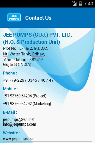 Mit Sitz in Ahmedabad (Indien), soweit Business ist eine wachsende Stadt betrifft. Jee Pumps hat ein hoch auf dem neuesten Werk mit erfahrenen Personal mit guten Fähigkeiten und moderne Technik zur Verfügung.