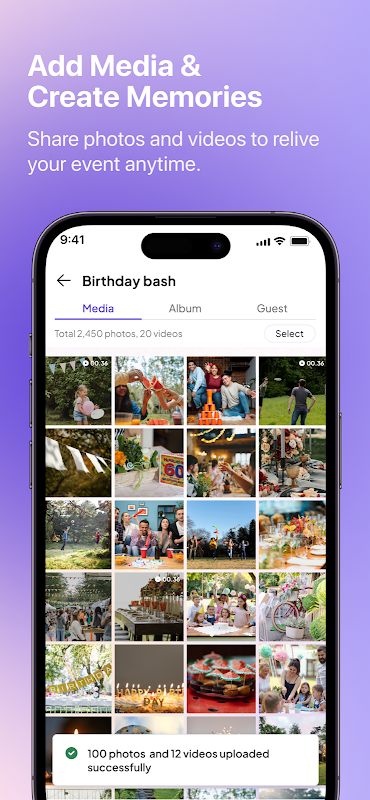 * Create dedicated albums, upload multiple photos at once, and keep everyone’s memories safely stored in one place.